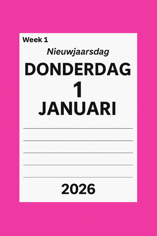 Grootletter dagkalender 2026 in A4 formaat met grote letters en cijfers. Grootletter scheur-/dagkalender A4 formaat in grootletterschrift met jaaraanduiding.
